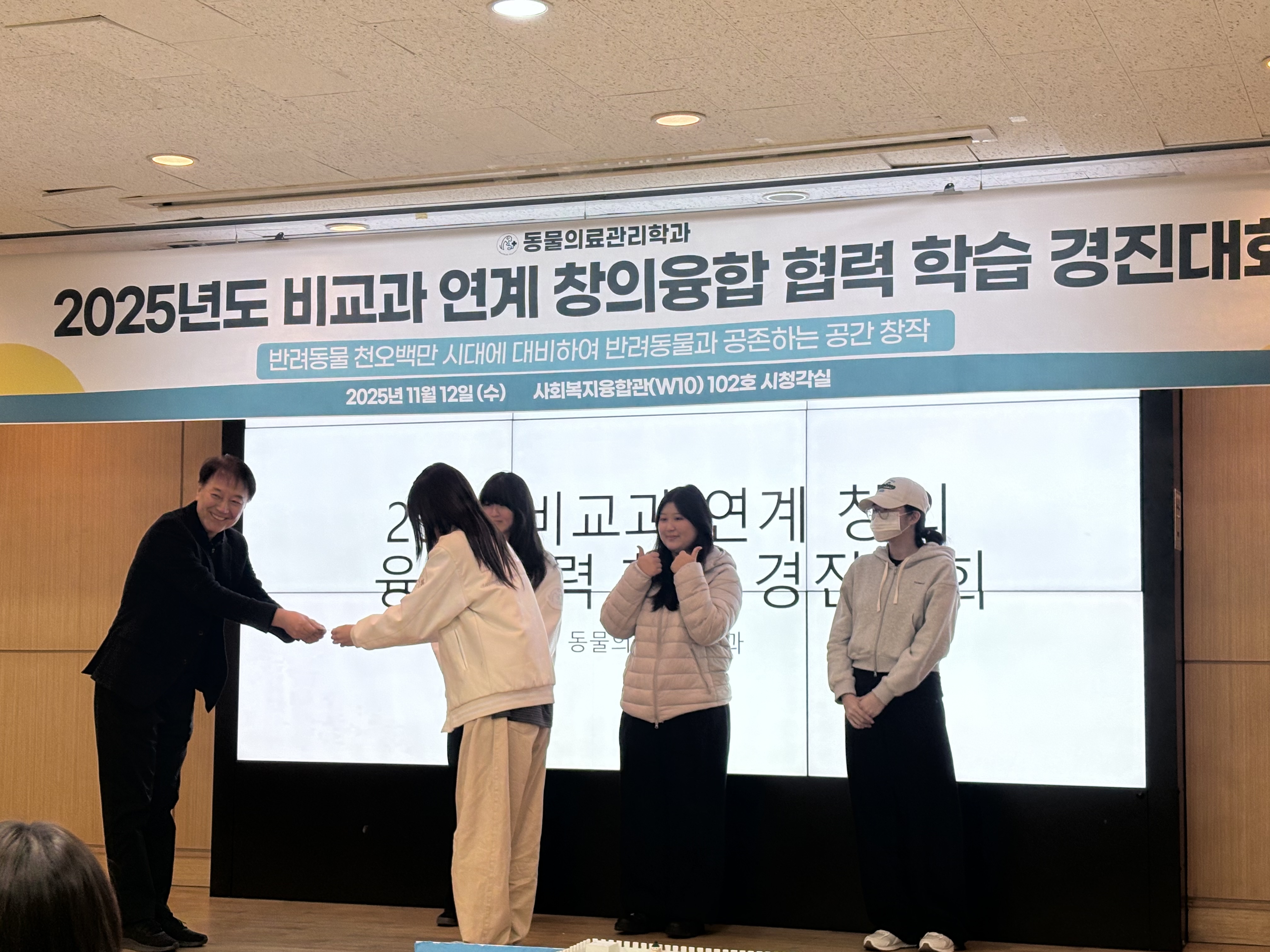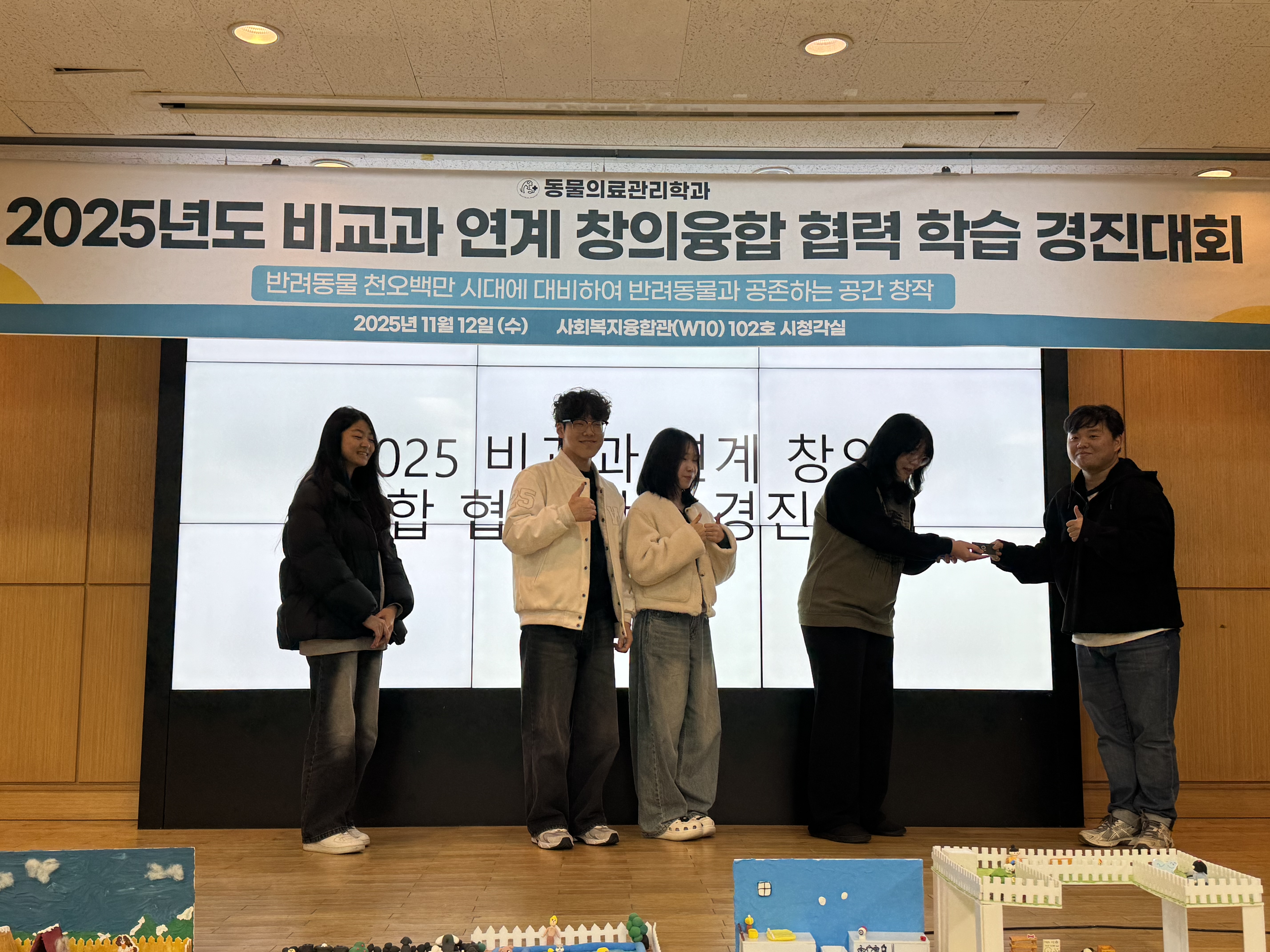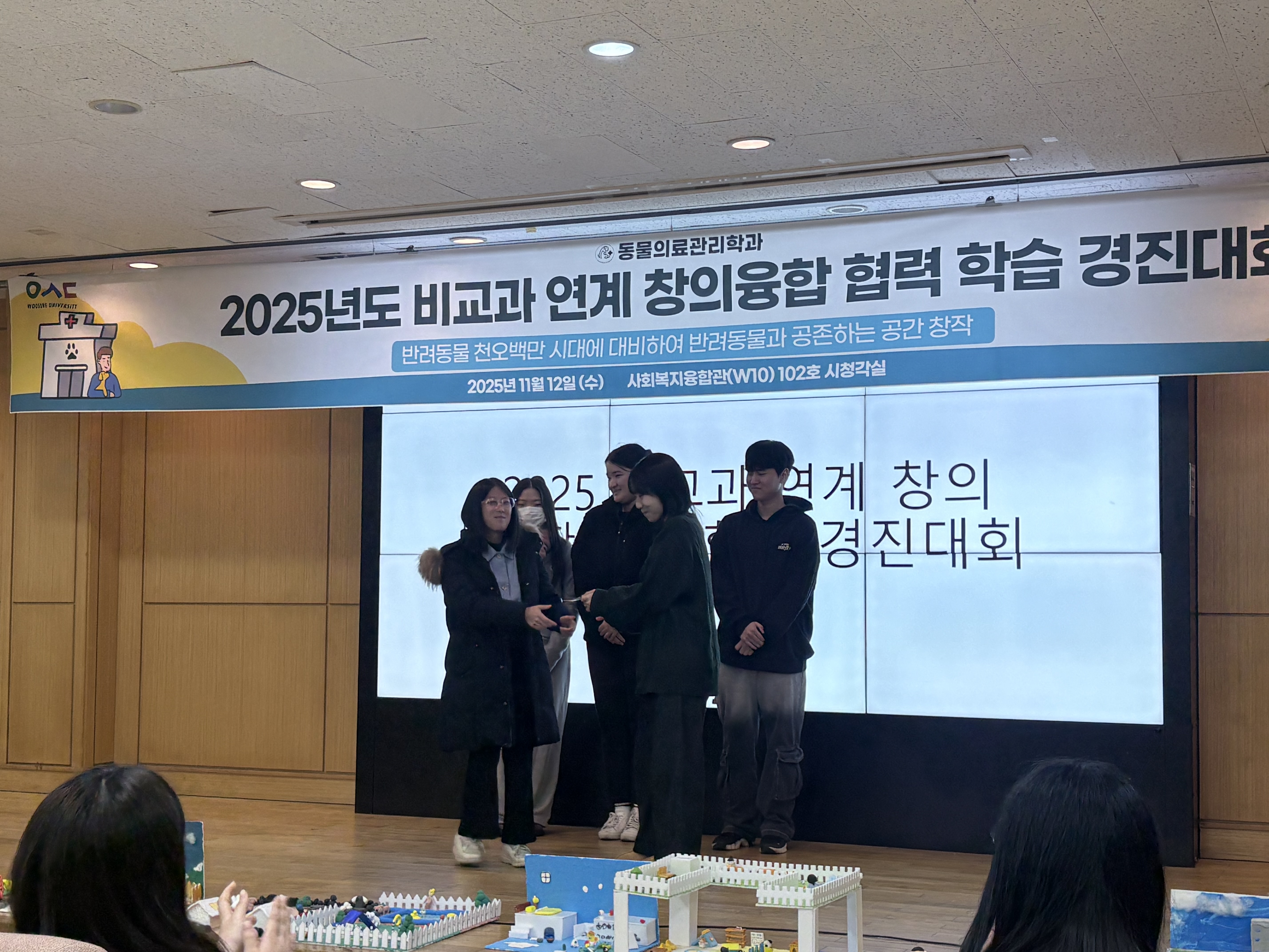 동물의료관리학과는 지난 11월 12일, 1·2학년이 함께 참여하는 학술제를 개최하였습니다. 이번 학술제는 “반려동물과 함께하는 공간 조성”을 주제로 진행되었으며, 학생들이 반려동물과 사람이 공존하기 위해 어떤 시설이 필요한지를 스스로 고민하고 다양한 아이디어를 제안하는 뜻깊은 시간으로 채워졌습니다.