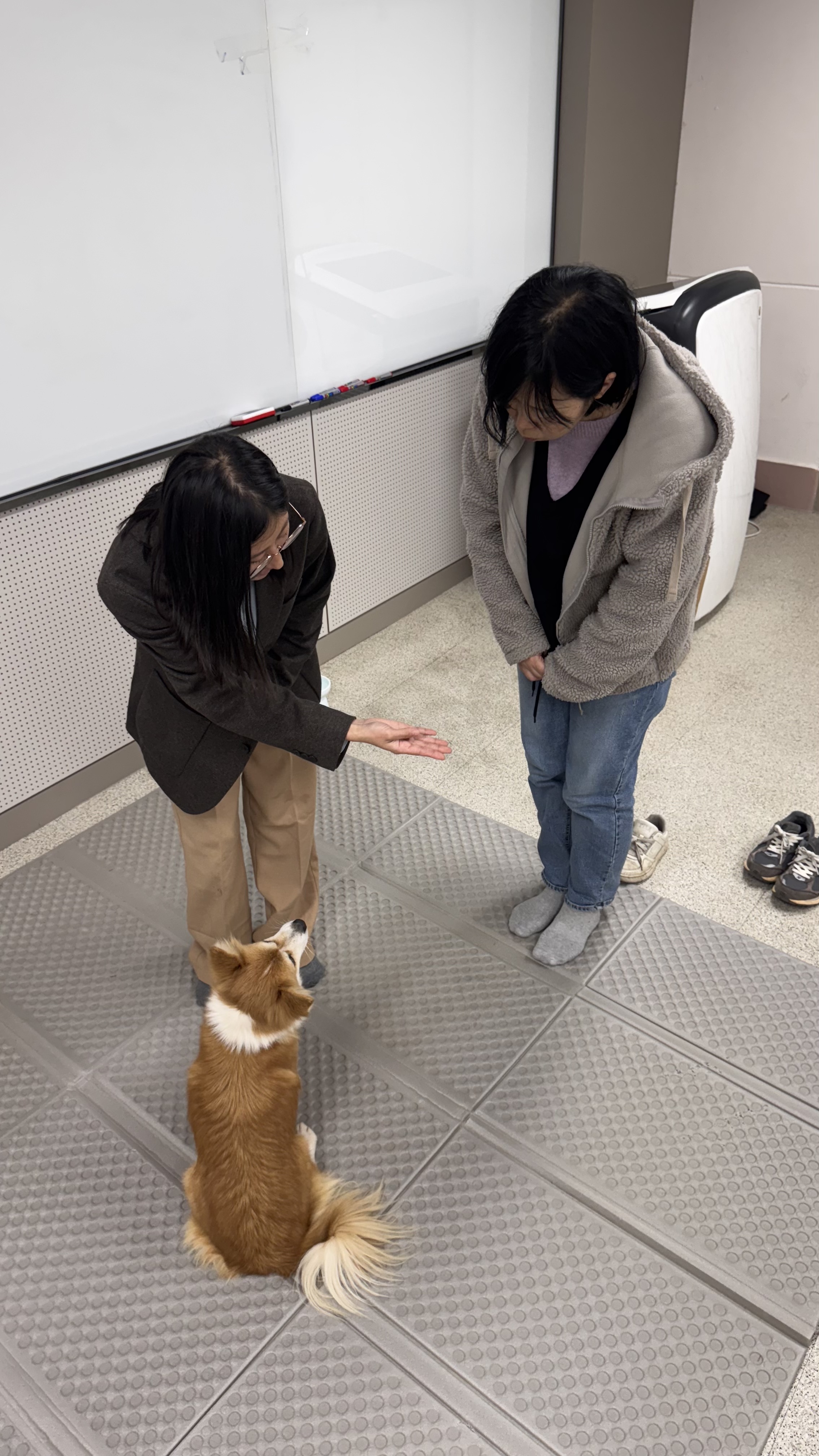 이한나교수님은 동물매개활동에 참여하는 지원자를 대상으로 기초 교육과 실습 프로그램을 진행하셨습니다. 교육에서는 슬리커 브러쉬 사용, 발톱 관리 등 기본 관리 방법과 함께 산책 시 행동 관찰, 리드줄 사용법이 안내되었습니다.