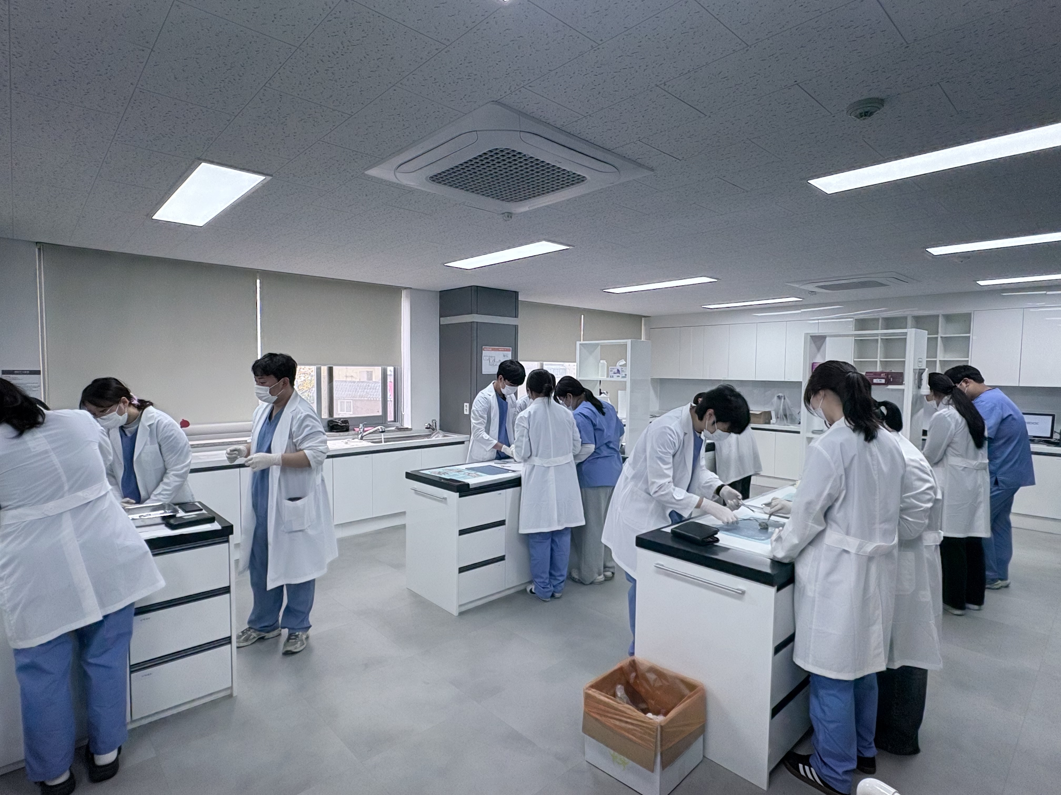 학생들은 장기별 형태학적 특징, 조직 간의 연결 구조, 소화·배설기관의 기능적 특성을 비교하며 해부 지식을 탄탄히 다졌습니다.특히 학생들이 실제 장기를 직접 다뤄보며 교과서로만 익히기 어려운 질감, 위치, 형태 등을 직접 보고 기존에 알고 있었던 내용에서 더 추가적으로 많은것을 배울 수 있는 시간이 되었습니다.