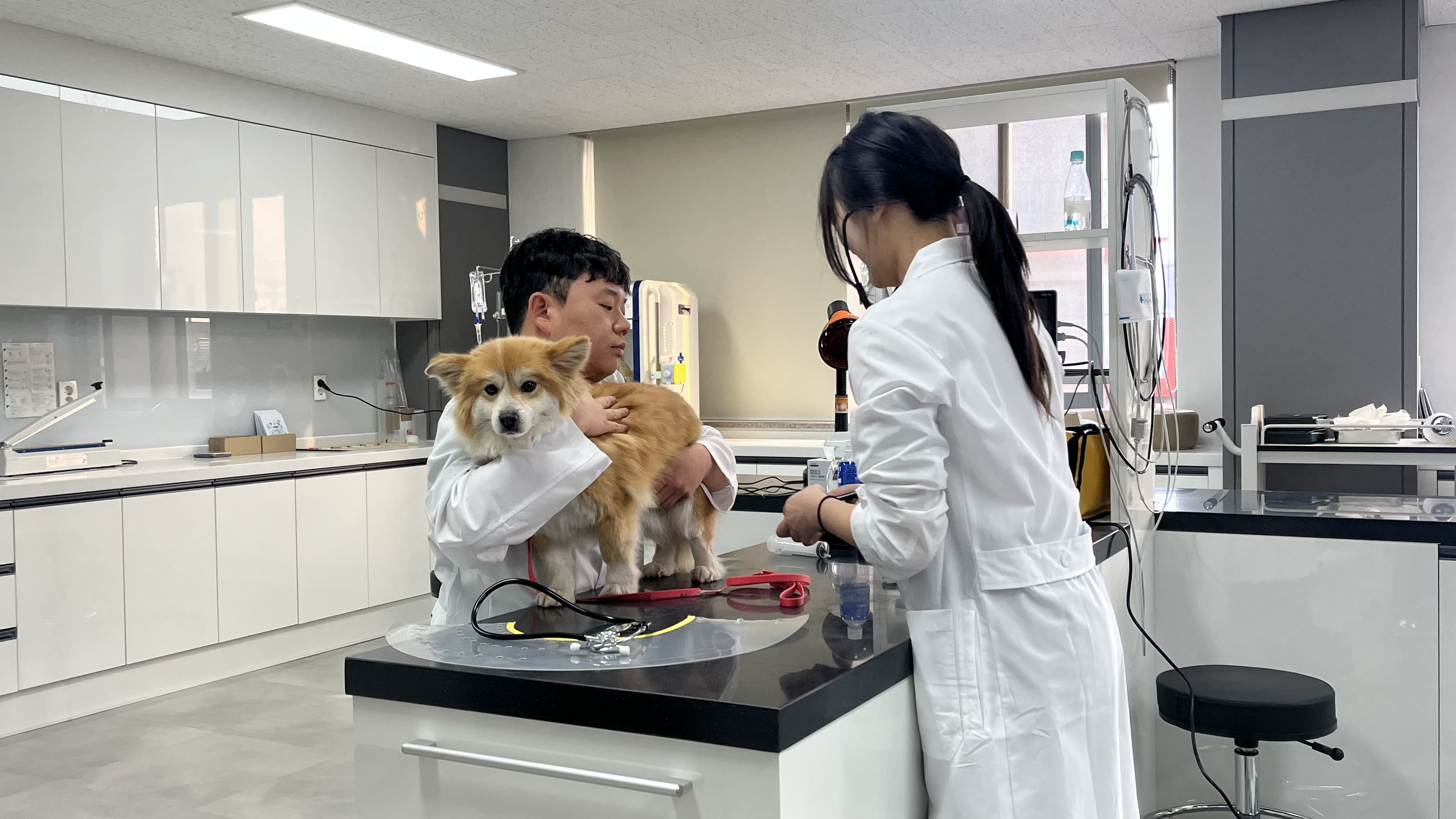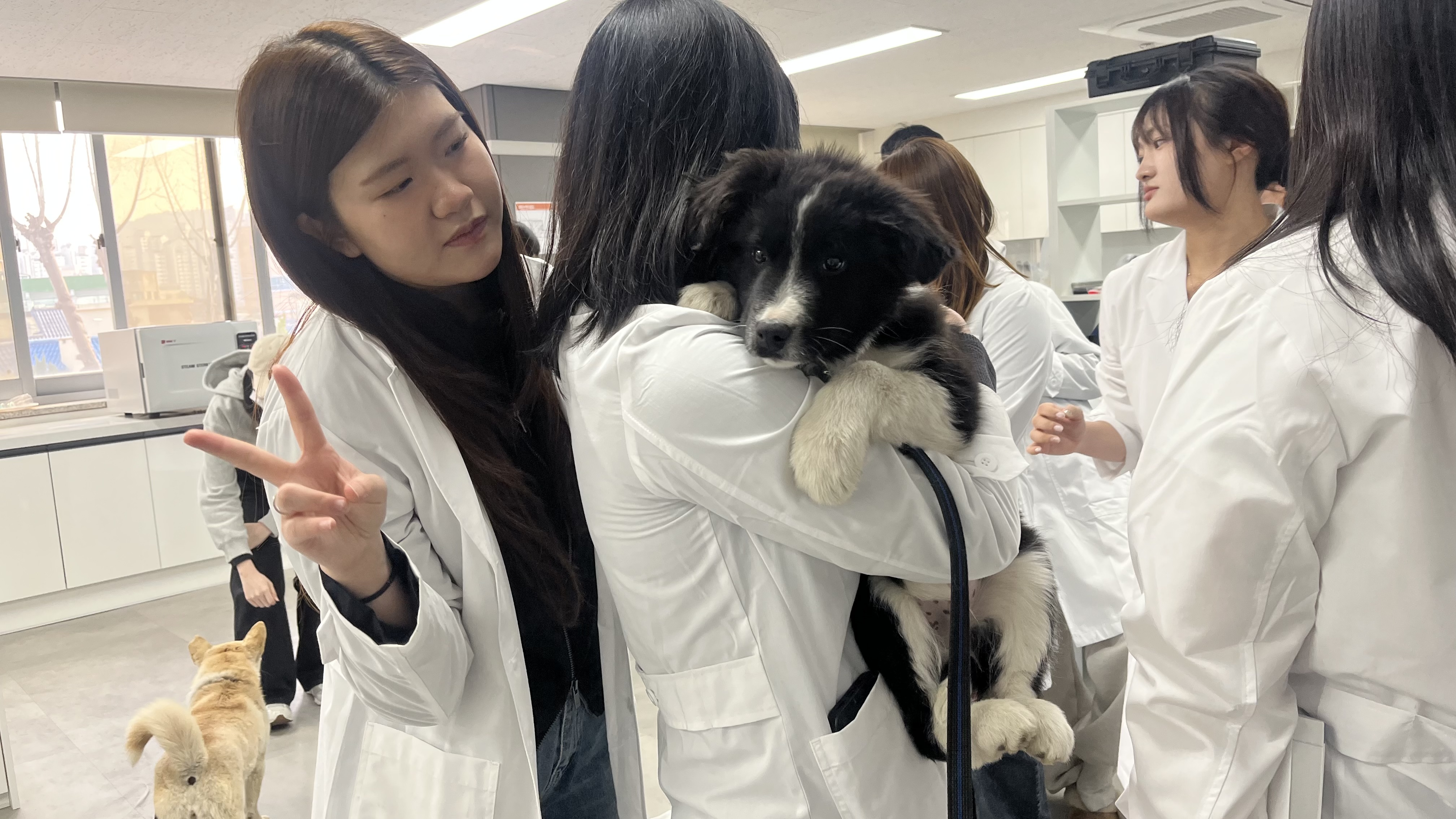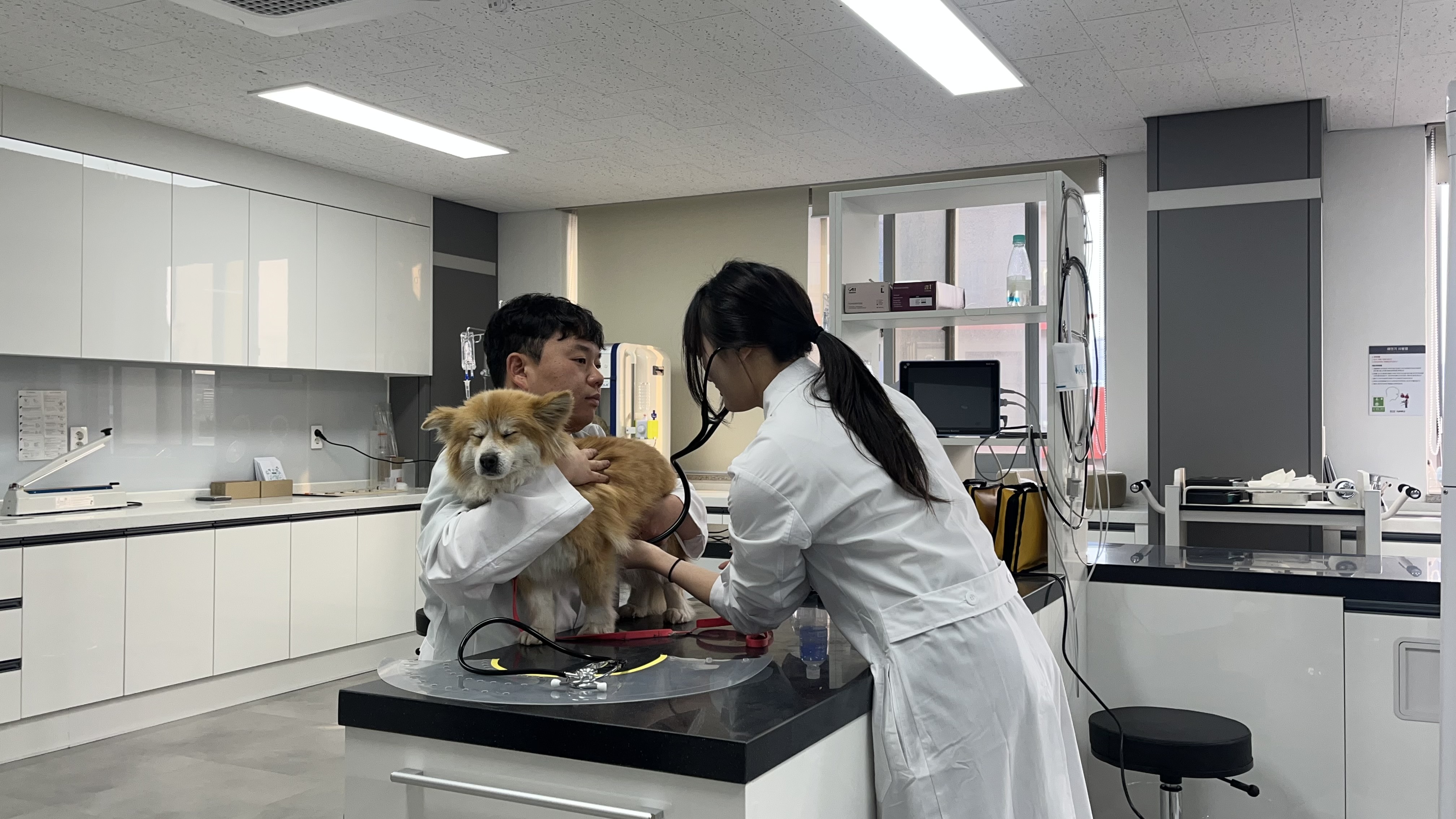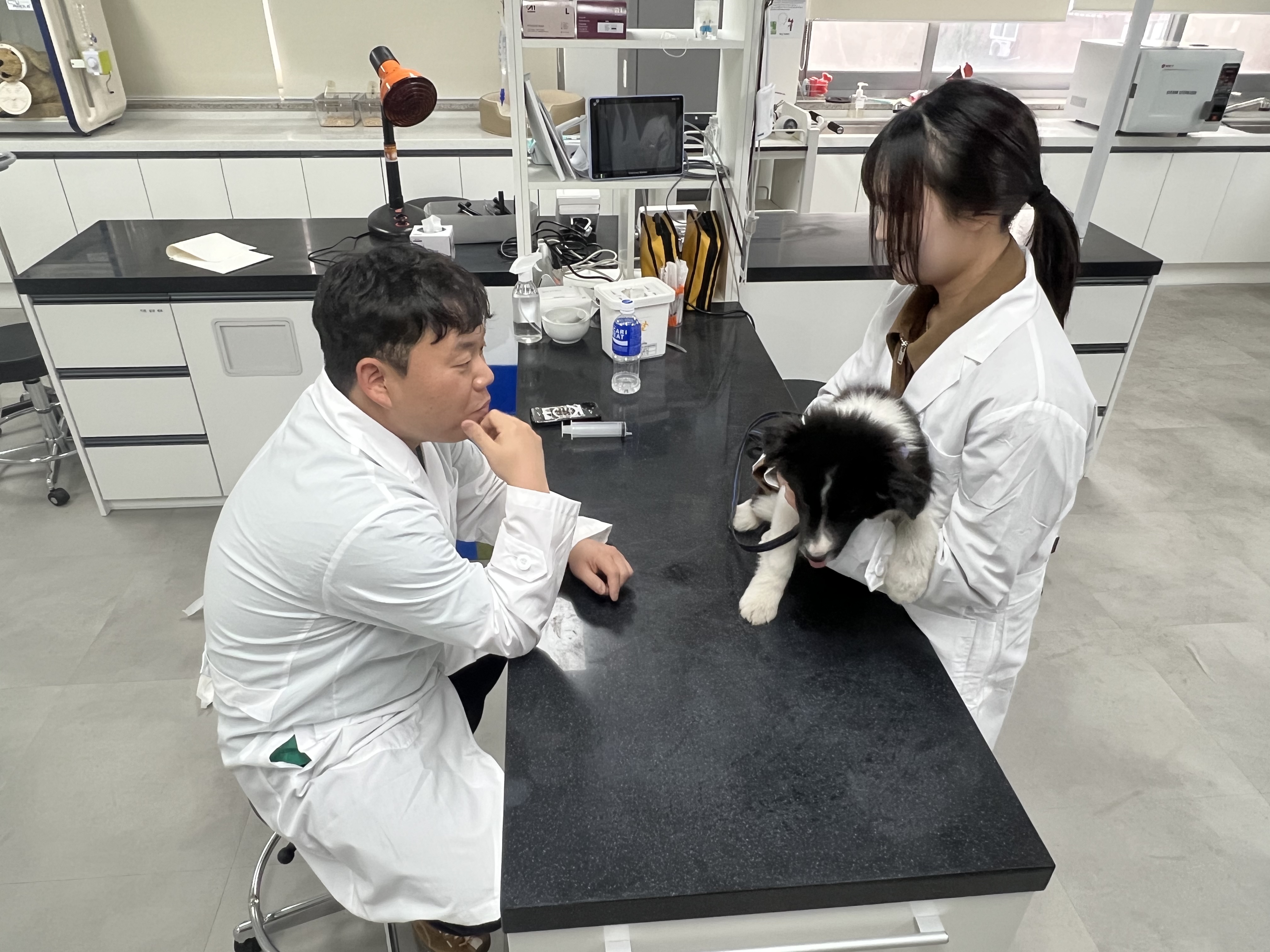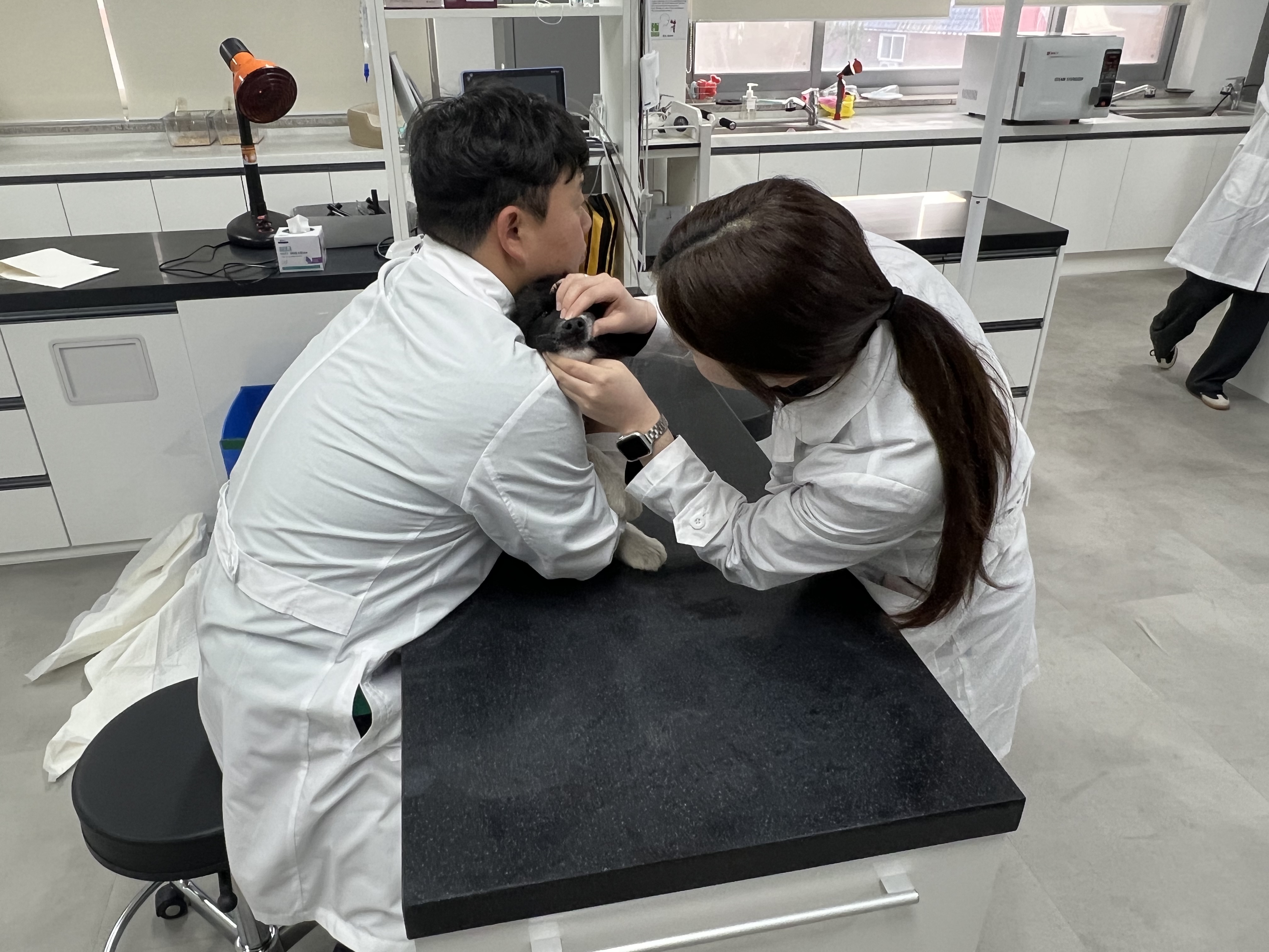 학생들은 교수님의 지도 아래 올바른 검사 방법과 주의사항을 익히며 반려동물의 안전과 스트레스를 최소화하는 보정 방법을 함께 실습하였습니다.