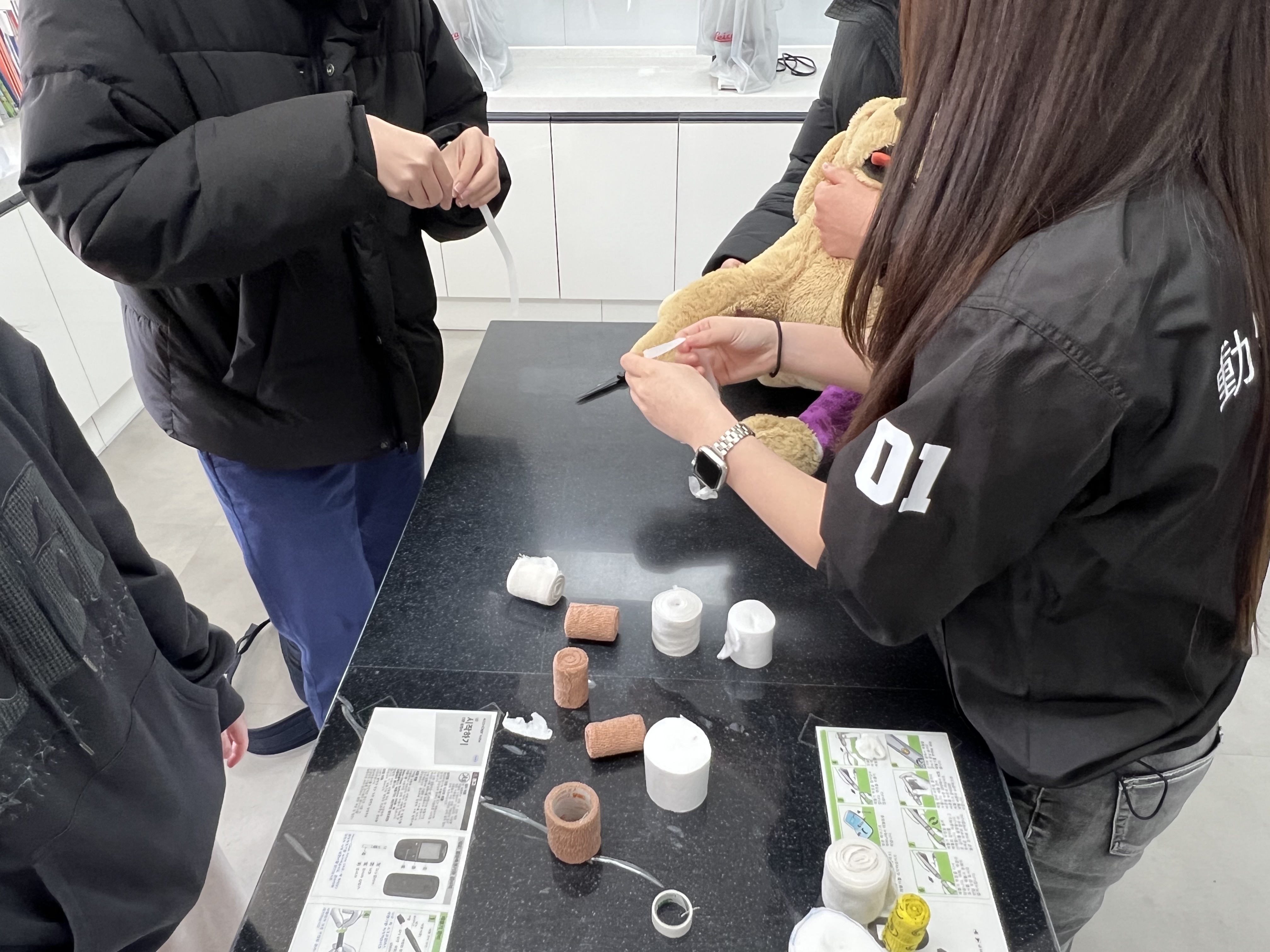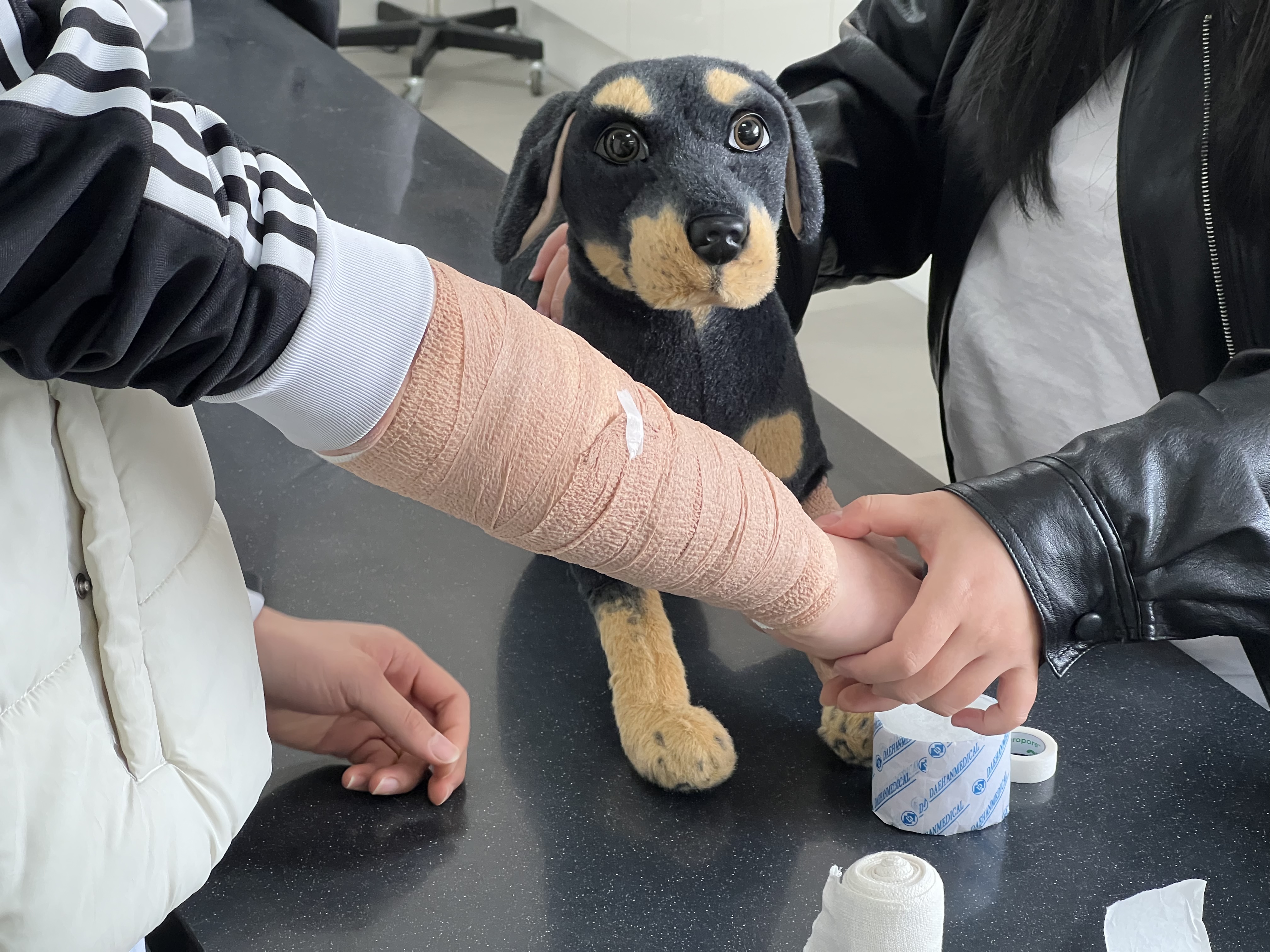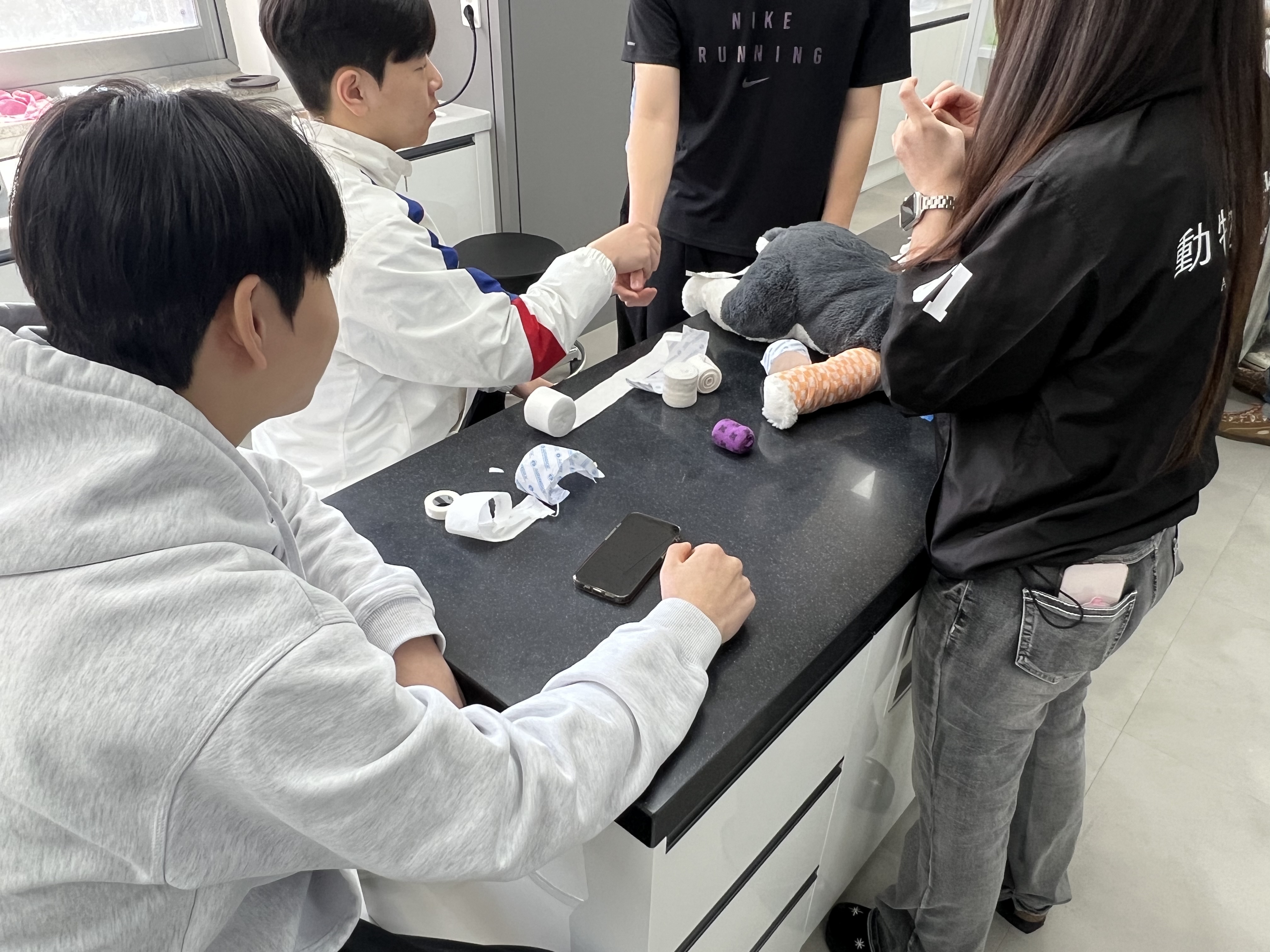 특히 학생들은 밴디지 감기 체험을 통해 실제 동물의료 현장에서 활용되는 기본적인 처치 방법을 직접 경험해보는 시간을 가졌습니다. 이를 통해 이론뿐만 아니라 실습을 통해 직무에 대한 이해를 높일 수 있었습니다.